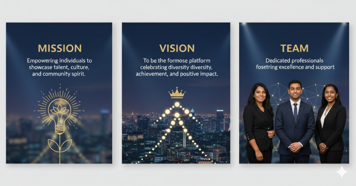 We envision a future where young Malayali women in New Zealand feel empowered, visible, and confident in their abilities to lead, achieve, and make a positive impact. Miss Kerala New Zealand aims to build a vibrant and respected platform that celebrates cultural heritage while shaping strong, articulate, and socially conscious role models for the next generation.